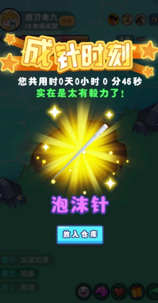 1、在游戏中,玩家需要持续磨制铁杵,尝试挑战能否成功将它磨成细针。