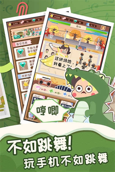 《舞法舞天》是一款题材新颖、脑洞大开的放置挂机游戏,它打破了传统设定,把充满趣味的“广场舞Battle”作为核心玩法。在这个游戏世界里,你不再操控英勇的战士或可爱的萌宠,而是带领一支支风格各异、气势磅礴的“广场舞大妈战队”,在热闹的广场上与各地对手展开一场又一场令人啼笑皆非的舞力较量!游戏采用清新的纸片画风,带有浓厚的手绘感,角色设定夸张搞笑,充满生活气息。搭配轻松欢快的背景音乐和魔性十足的舞蹈动作,不仅让人捧腹大笑,还能在轻松的放置玩法中体会到“草根竞技”的独特魅力。