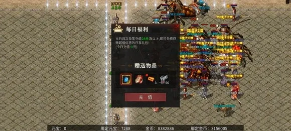 28日充值会赠送背包专属道具和炼狱塔门票(每天击败的boss会进入这里),推荐氪金玩家参与,炼狱塔位于土城左下方位置。