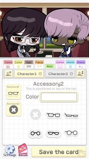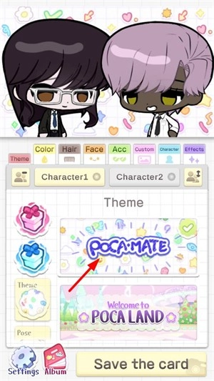 2、确定主题后,点击【character1】或【character2】,分别给两个角色更换装饰,塑造个性化形象。