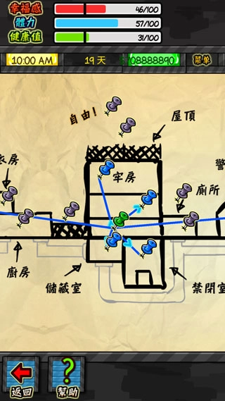 7、最后仔细研究监狱地图,制定周密的越狱计划并成功逃脱。