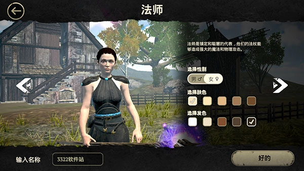 2、以法师为例,接下来设定性别、肤色、发色和昵称,然后即可开启你的冒险之旅。