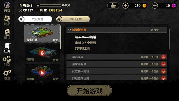 3、打开任务界面,设定目标后点击开始,通过挑战各类任务来赢取丰厚奖励。