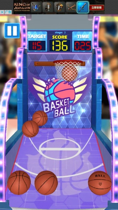开启你的投篮体验吧,就像在游戏厅里玩的那种投篮机一样,玩起来特别有意思,而且每次命中后篮筐还会变换位置呢。