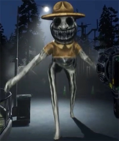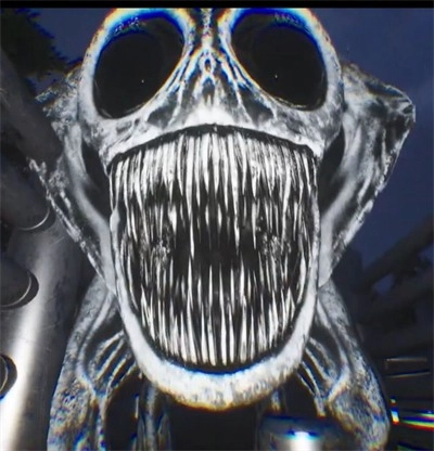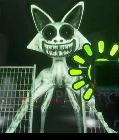 门外站着怪物微笑猫,它正试图杀死玩家。这只怪物微笑猫有着两条腿站立的姿态,咧着嘴大笑,爪子十分锋利,毛色黑白相间,眼睛是黑色的,没有鼻子和尾巴。