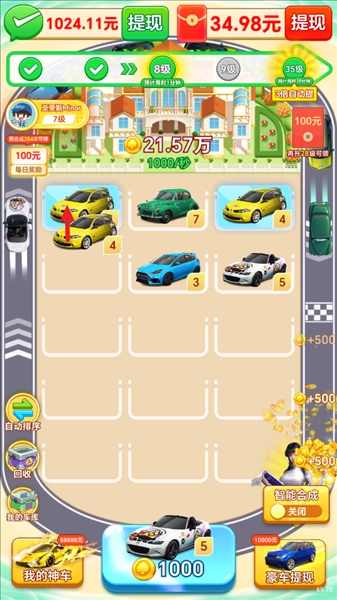 收集各类豪车进行合成升级,解锁的豪车数量越多,能获得的红包奖励就越丰厚,玩起来也更有期待感。