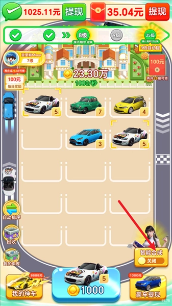 4、合成出5级豪车后,可点击右下角开启自动模式。