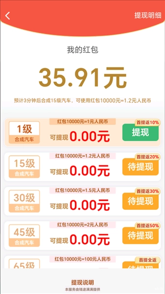 3、合成解锁新车辆即可获得红包奖励,等级越高,奖励越丰厚。