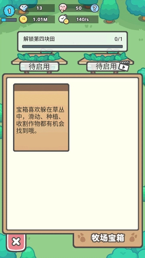 当玩家收集到足够数量的金币后,就可以解锁新的田地,进而种植更多种类的农作物。