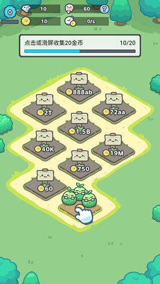 3、游戏初期,玩家需要逐步收集金币,只需点击几次屏幕、滑动几下,就能获取启动资金。