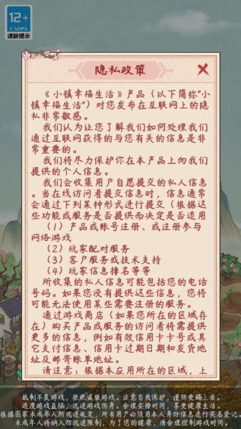 1、首次打开小镇幸福生活需要阅读相关的隐私权限