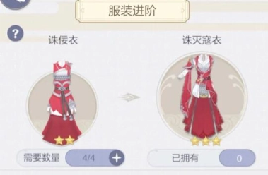 2、点击服装进阶,当收集到足够数量的衣服后,就能对服装进行升级。