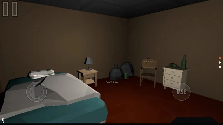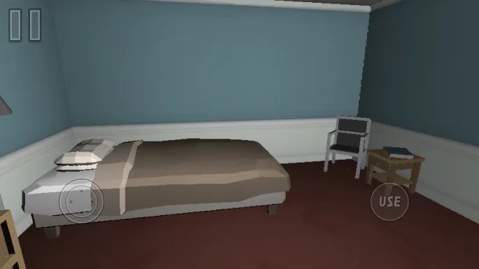 3.我以第一人称视角在光线昏暗的卧室及相邻房间里展开探索与互动,仔细检查门窗、电器以及所有看起来可疑的物品。