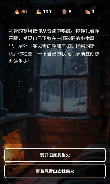2.维持体温是生存的关键。食物与木柴是你仅有的依靠,请务必谨慎使用。