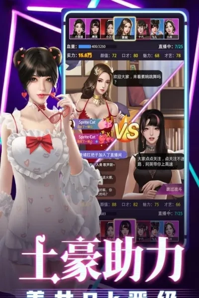 3、独特经营体验:在其中亲手规划自己的星途发展,通过参加各类比赛来积累人气和资源,进而创立属于自己的经纪公司,签约知名艺人。初期需发掘有潜力的主播角色,提升集团的影响力,扩大经营规模,与其他公司展开竞争,逐步推动集团事业发展,积累个人财富。