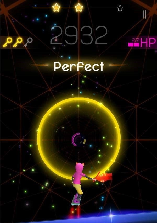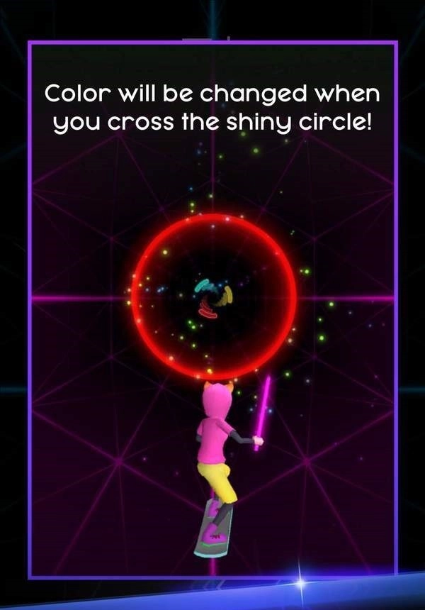 1.依据音乐的节奏以及画面中的颜色变化来操控角色的方向;