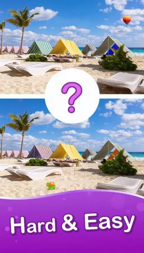 在这个游戏里,玩家要在两张看起来几乎完全一样的图片中找出所有不同之处。每一个关卡都藏着五处差异,有的差异十分细微,有的则藏在背景里面。你得仔细观察每张图片,寻找不一样的地方,并且要在规定时间内把所有差异都找出来。游戏的难度会慢慢提升,越往后的关卡,差异也会变得越来越难发现。另外,还有数量有限的提示道具可以让玩家使用,用来帮助找出那些难以发现的差异。