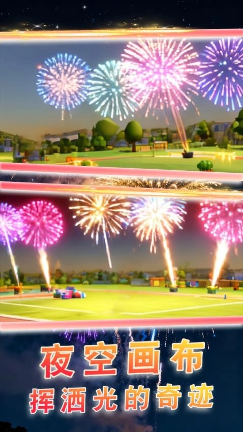 在超级烟花模拟里,你能尽情释放创意,亲手打造各式各样的烟花,前往不同风格的场景进行燃放,每一次绽放都能带来独一无二的视觉享受,还能解锁对应的任务评价!除了要仔细挑选最终的燃放地点,更得亲手摆放烟花、调整燃放顺序,这些细节会直接影响最终的评价等级和丰厚奖励。