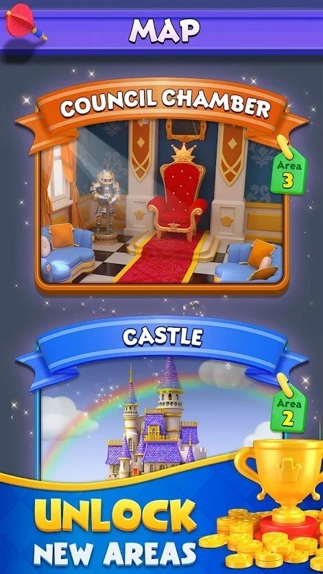 1、丰富多样的关卡设计,通过完成轻松有趣的小挑战,解锁并收集各式各样的城堡吧。