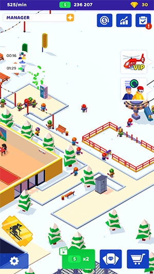 【滑雪场闲置大亨】是一款模拟经营游戏。在游戏里,你将化身一名有商业头脑的滑雪场经营者,从无到有地建造并打理专属于你的理想滑雪胜地。无论是雄伟的山峦景致、惊险的滑雪跑道,还是舒适的休息区域,所有一切都由你做主。玩家能够尽情发挥自己的创意,打造出别具一格的滑雪场,彰显个人的风格与审美。