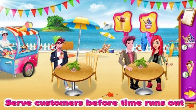 这是一款沙滩冰淇淋模拟体验游戏,在这个炎炎夏日的沙滩上,你将售卖各种美味的冰淇淋。随着顾客的增多,你会获得更多收益,进而解锁更多全新的冰淇淋口味。只有提供不同种类的冰淇淋,才能吸引更多顾客,让你在这里收获更丰厚的奖励。