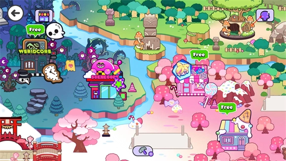 2、可以前往不同风格的地点场景游玩体验,每个区域都有不少可互动的物品可供使用。