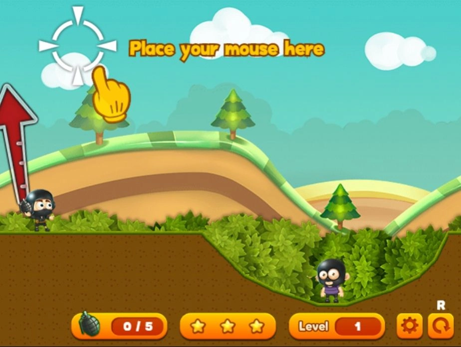 特种兵手雷是一款有趣的投掷类游戏。你需要调整抛物线来扔手榴弹攻击敌人,若成功击败敌人就能顺利通关。