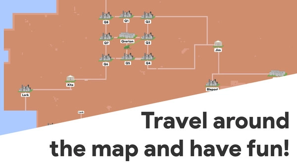 1、化身青蛙,滑行穿梭于绮丽的沙漠之中。借助地图在各个城市间往来旅行,完成任务来获取升级所需的硬币。