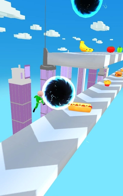 2.赛道上分布着各式各样的食物与陷阱。每吃掉一份菜肴,都能提升通关的分数。