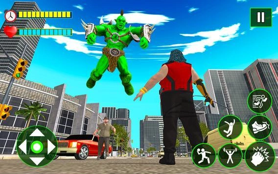 2.您可以借助操纵杆控制这个怪物英雄的移动,同时通过沉重击打按钮与之战斗。