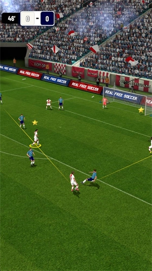 2、进入关卡后,通过滑动屏幕能够规划出球员踢球的路线,松开手指后球员便会把球踢向设定的位置。