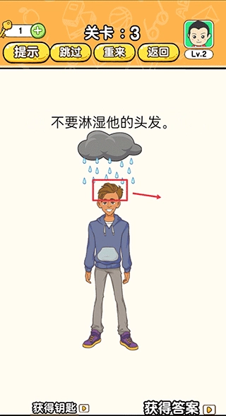 第二关:把男生眼睛上的黑眼圈挪开即可通关