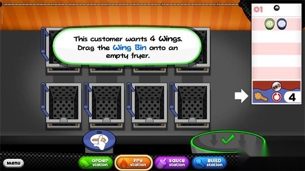 1、玩家需要根据客人的要求制作最美味的鸡翅。