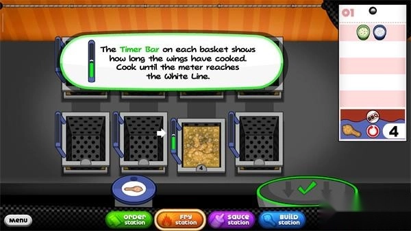 9、每个篮子上的计时器条会显示鸡翅的烹饪时长,我们需要把鸡翅煮到计时器条的白线位置。