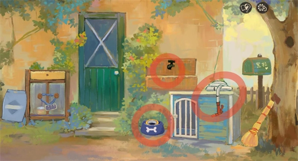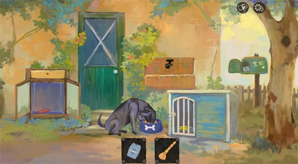 3、先用开瓶器打开柜子里的罐头喂狗,再用砂灰和扫帚清理狗笼旁边的污渍,完成工作开始前的准备。