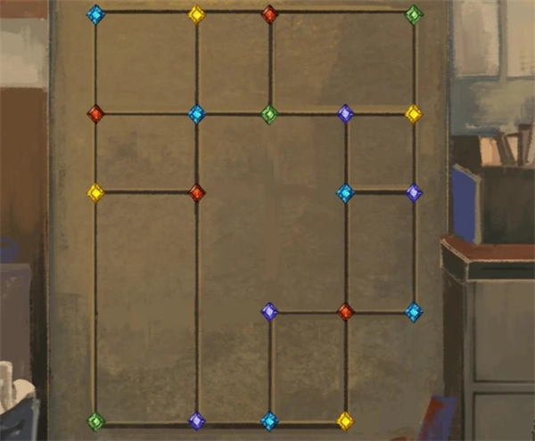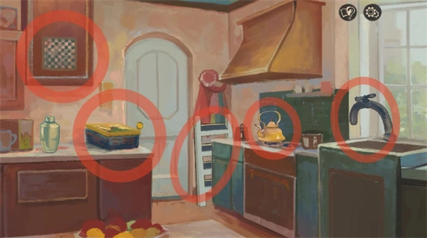 5、去厨房取来火柴、梯子和水壶,借助梯子一笔画完成顶柜的解锁以拿到扳手修理水龙头,接着烧水来完成解谜。