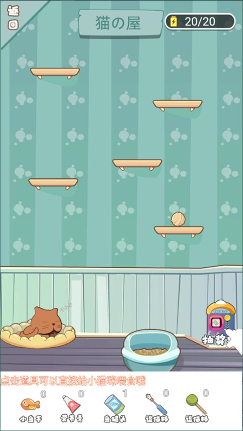 5、另外还有“猫的小窝”玩法哦,在这里你可以和小猫咪互动,还能通过喂食来增加它们的体力值呢。