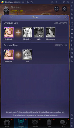 空闲天使有个有趣的功能叫天使命运。当特定天使加入阵容时,这个功能就会给天使们提供奖励和增益效果,像额外的攻击力之类的。