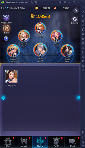 1、大厅——你可以在这里进行召唤新英雄、熔炼多余装备、完成日常任务以及参与PvP竞技场竞争等操作。随着你在游戏中不断升级,大厅会解锁更多可用功能。同时,大厅也是你“封面天使”的专属空间,也就是你最喜爱的天使所在之处。你可以随时更换封面天使,还能为他们更换服装(若有)和背景。