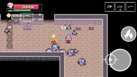 进入后,我们会直接开启战斗,屏幕左右两侧各有一个摇杆按钮,左边的用来操控主角移动,右边的则负责控制攻击方向。