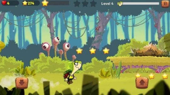 2.你能够操控小乌龟的前进以及躲避障碍物的动作,当遇到危险时,能躲避就通过跳跃来避开,要是无法躲避就主动攻击过去。