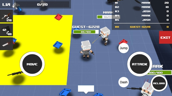 这是一款超刺激又有趣的射击枪战游戏,画面精致,武器装备精良,让人简直忍不住想玩。玩法容易上瘾,操作也很简单。玩家将扮演方块人参与战斗,要在限定时间内尽可能击败敌人。赶快消灭其他玩家吧!