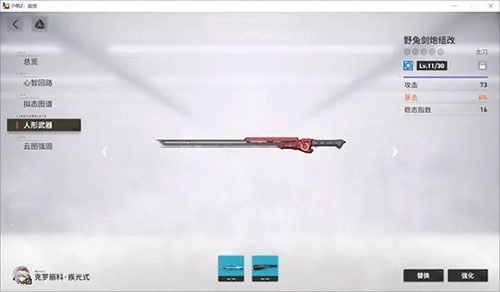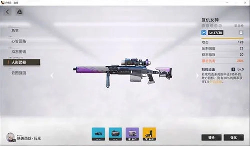 人形武器主要分为动能武器和离子武器两类,前者对应硬质护甲,后者对应离子涂层。每类武器只能由特定职业装备,角色的技能属性完全由武器属性决定。强化武器可以提升攻击力,武器达到满级后可进行本体突破,突破后能提高等级上限并增加武器的被动技能。金色武器不仅拥有专属被动技能,还具备全部配件格(不同金色武器的配件格数量有所差异);紫色武器则拥有半数配件格。此外,紫色或金色的配件都带有被动词条。