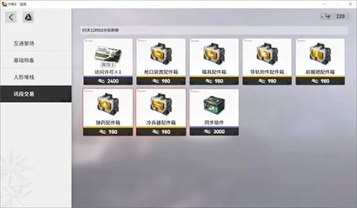 讯段交易这里可使用讯段标记采购武器配件箱等物资。