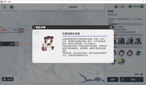 除了金币、战场报告(经验)和日志(心智回路强化材料)这些核心资源外,在剧情战役与困难模式(这名字起得真有“绝活”)里还能额外拿到妖精补给箱。其中困难模式从第二关起,更能额外获取一星角色的碎片和金色妖精补给箱——这可是本次测试里妖精的主要获取渠道,估计以后也不会专门开妖精卡池。并且所有关卡都支持自律作战(也就是扫荡功能),哪怕还没达成三星通关,现在也能直接自律(这对咸鱼党来说可太开心了)。
