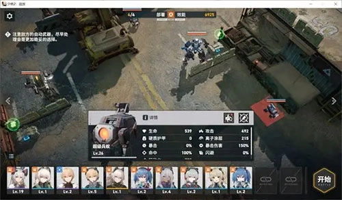 在部署界面中,六边形格子是我方的可部署区域,界面上方会显示我方可部署的人形单位以及当前的效能(战力)数值。我们能够通过拖动人形的方式来调整阵容配置和布局位置,而人形头顶的颜色标记则对应着该人形当前的伤害类型。