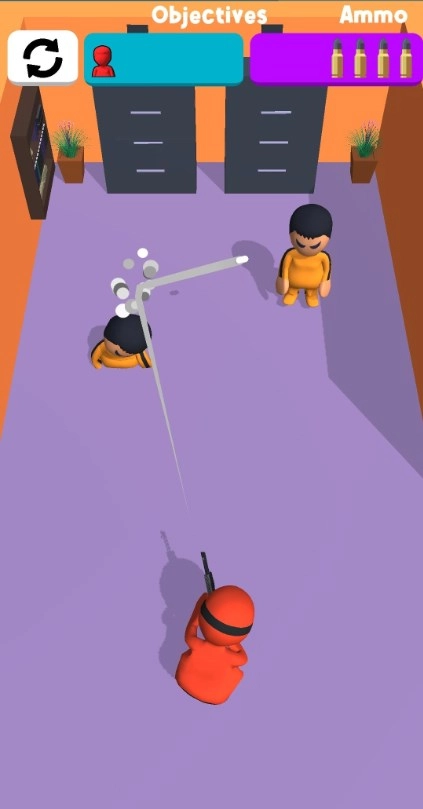 《偷袭大师》是一款益智射击游戏。游戏中,玩家将化身为特工,任务是暗杀各类目标并完成不同任务。游戏的一大特色是子弹能够反弹,借助这一特性,我们可以悄无声息地消灭目标、完成任务。不过每关的子弹数量有限制,因此每一颗子弹都不能浪费,子弹使用得越少,最终的评价就越高。