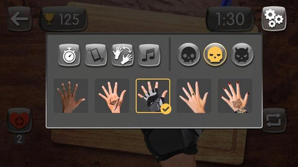 3、而且屏幕上的手还能进行多种选择,不仅可以挑选不同的肤色,还能给手戴上手套,甚至可以添加纹身,各种奇特的元素都能找到,可谓是应有尽有。