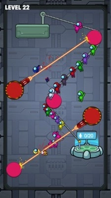 《我们之中大拯救》是一款以太空冒险为主题的趣味闯关游戏。在游戏里,许多宇航员被困在了太空之中,你需要想办法营救他们。每次挑战都会给你一根绳索,你要规划出最佳的路线,帮助所有宇航员都能安全抵达下一个平台。