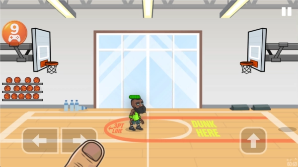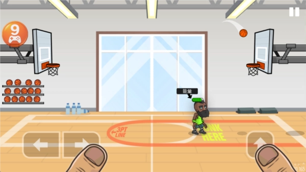 投篮时,我们需要持续按住右侧屏幕来完成跳跃投篮的动作;但如果只是快速点击右侧屏幕后立刻松开手指,主角就会做出投篮假动作。这些假动作有时能迷惑对手,让他们提前起跳,从而避免干扰我们后续的真实投篮。